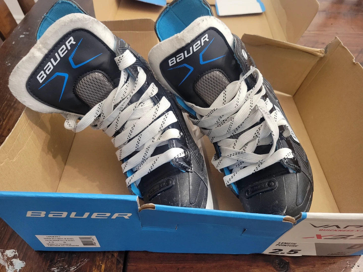 107Selling a pair of used Bauer Vapor X3.5 ice skates in size 2.5. They are in great shape and come with the original box.