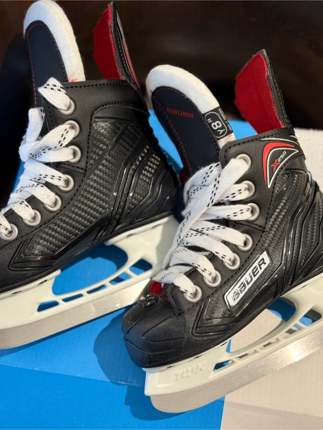 53Selling a pair of Bauer X250 youth ice skates in size Y8. They are in great condition and ready for the rink! The blades are Tuuk.