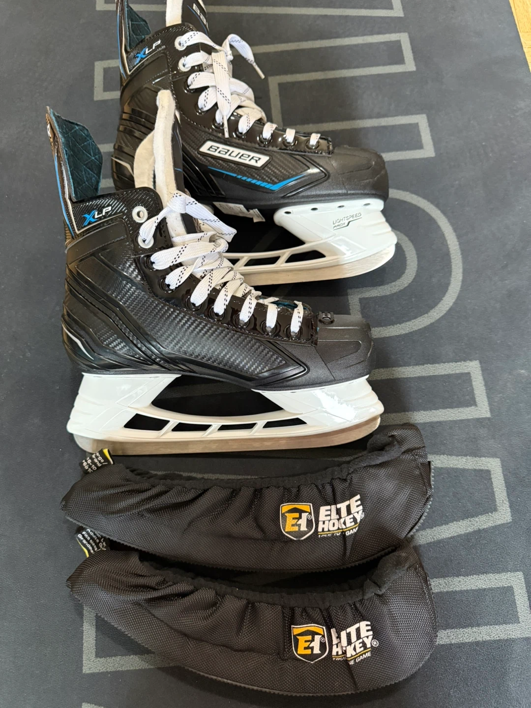44Selling a pair of Bauer XLP ice hockey skates Light Speed ProII in size 7. They're in great shape and ready for the rink! Also included are a pair of Elite Hockey skate guards to keep those blades protected
