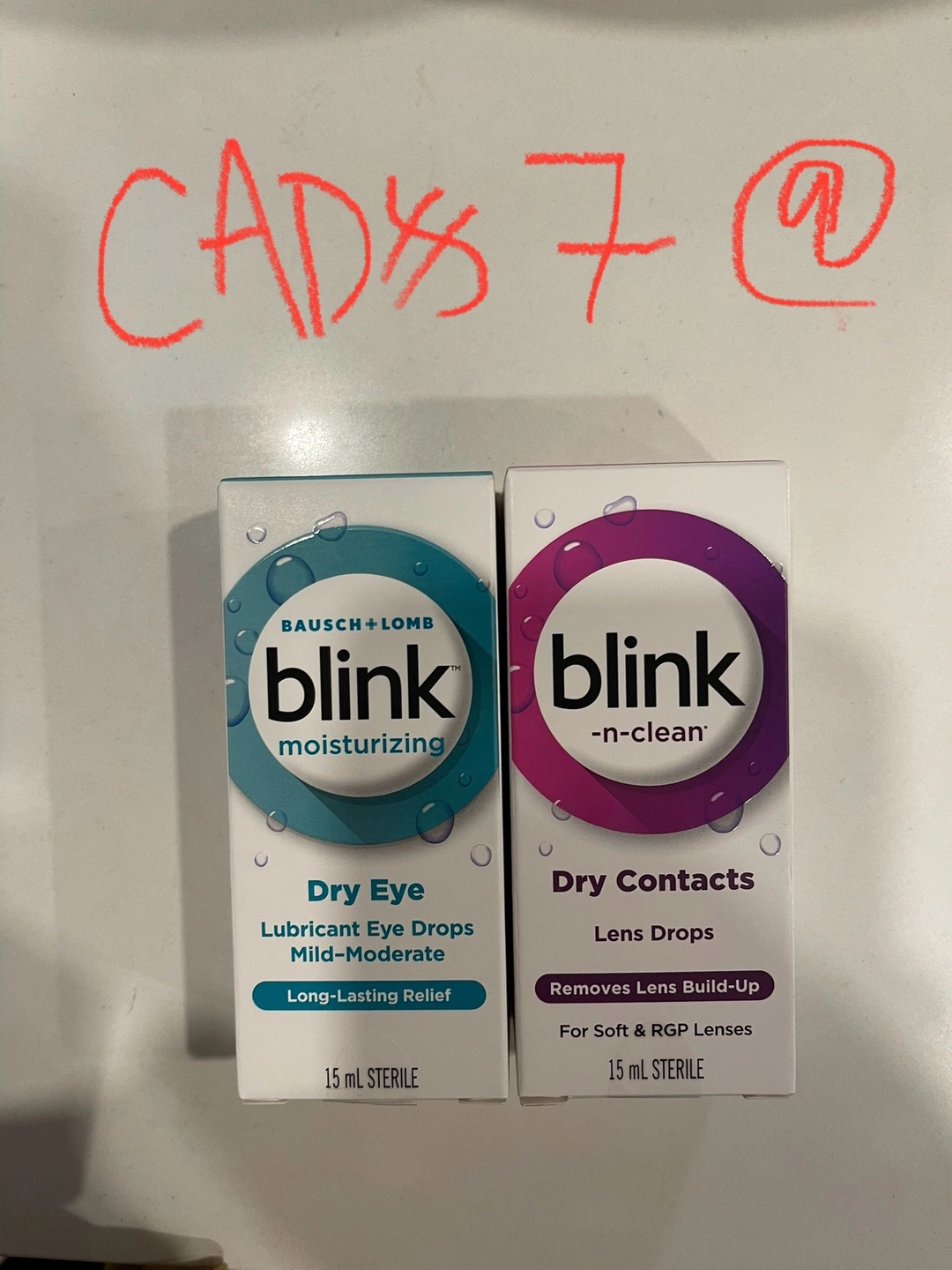 10I have Blink moisturizing eye drops and Blink-n-clean lens drops for sale. They are both 15ml sterile drops. These drops provide long-lasting relief for dry eyes and remove lens build-up for soft and RGP lenses. A similar item sells for $12.98 online
