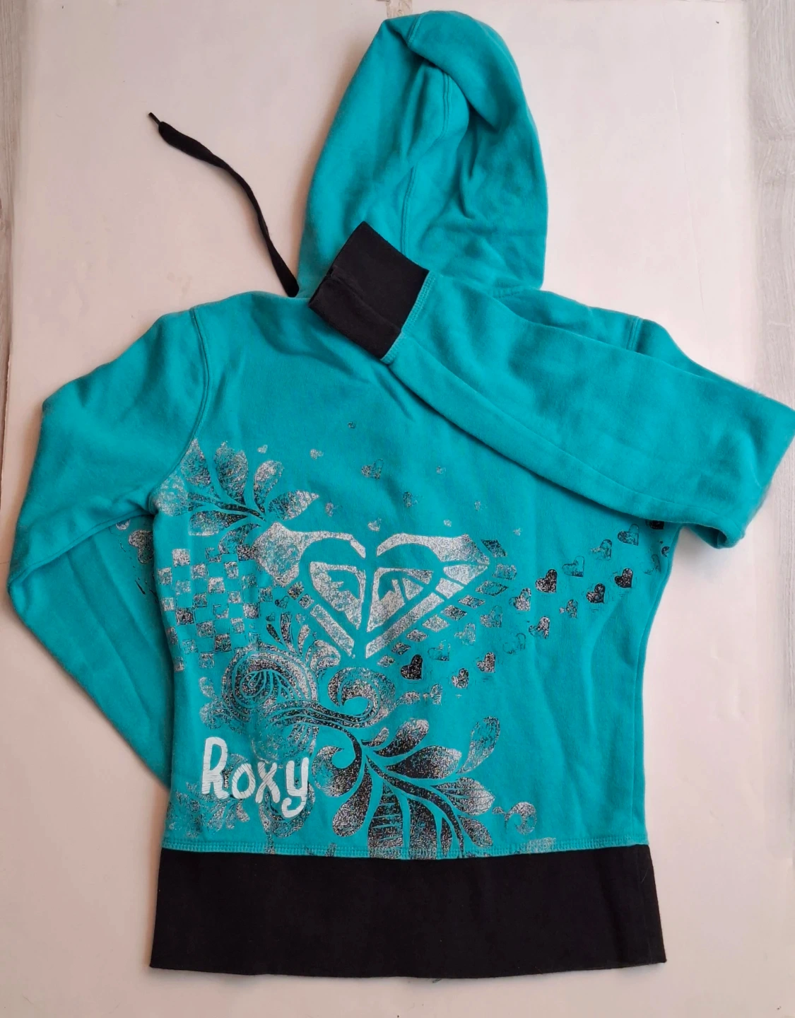 🥕Roxy Teal and Black Graphic Zip-Up Hoodie