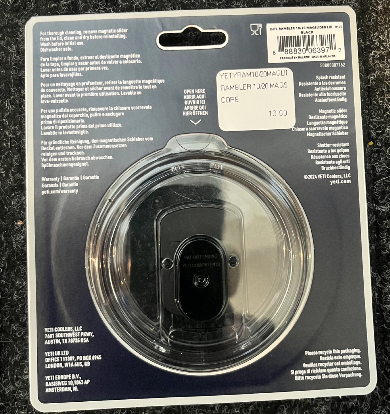 Brand new, never opened YETI Rambler MagSlider lid. Fits various YETI Rambler tumblers. Magnetic closure. Easy to clean.
