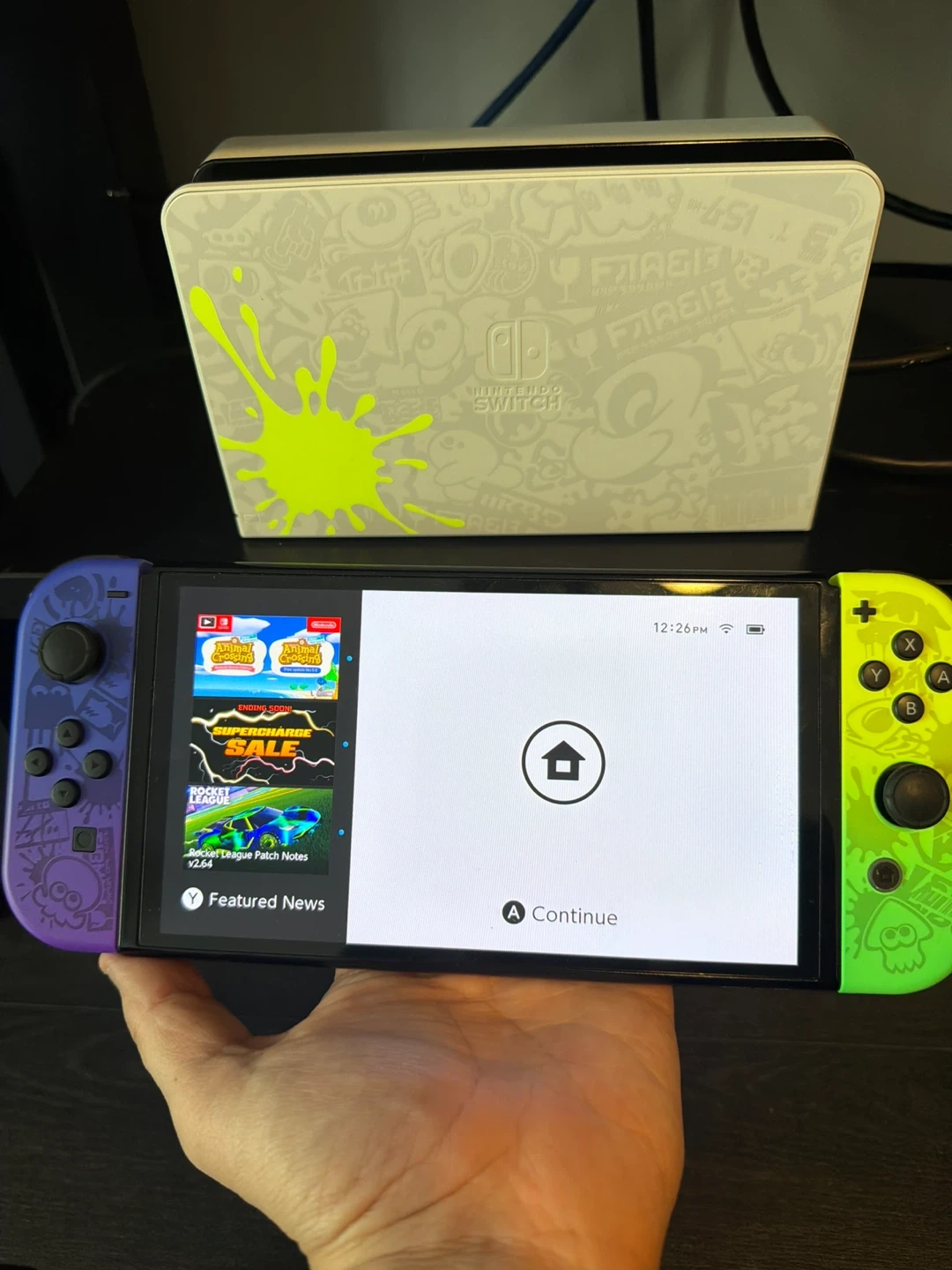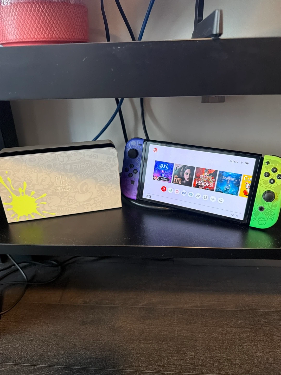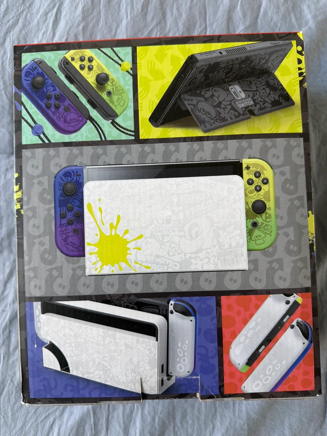 Special edition Nintendo Switch OLED model console. It features a unique Splatoon 3 design with vibrant colours. Includes Joy-Con controllers, HDMI cable and dock.