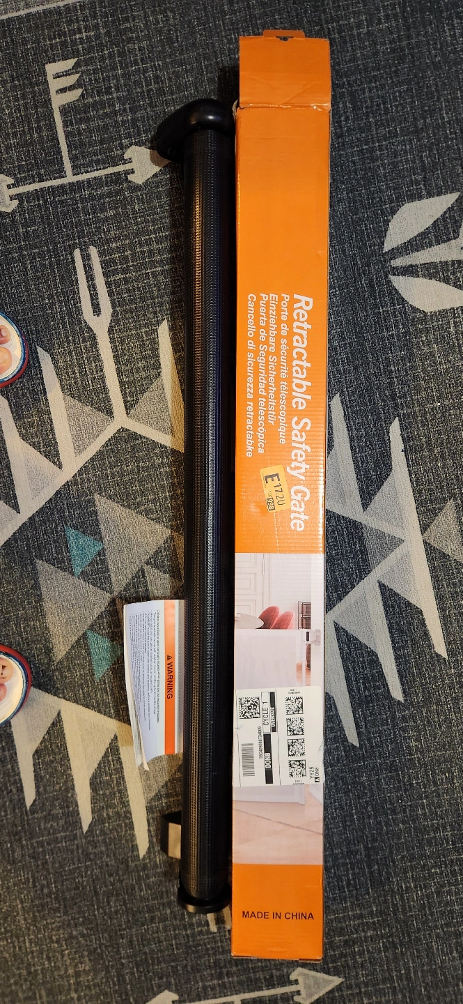 Retractable safety gate. Includes all hardware and instructions. Easy installation. Perfect for doorways and hallways.