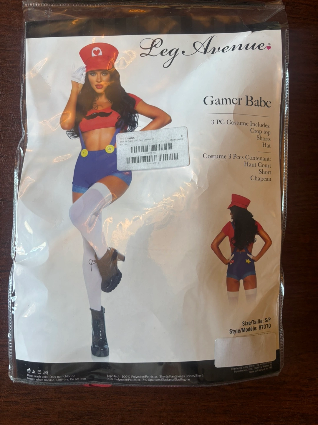 Leg Avenue Gamer Babe costume. Includes a crop top, shorts, and hat. Size S/P.
