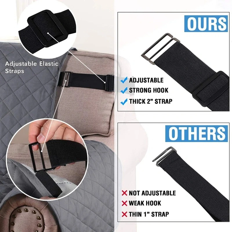 Protects against spills, pet fur, and food. Features adjustable elastic straps for a secure fit. Made from high-quality microfiber fabric with soft textile fiber filling. Water-resistant material. Please measure your sofa before purchasing.