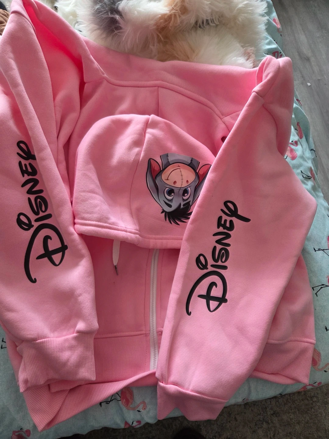 $25.00 Each or both for $40.00! This set includes a pink Disney Eeyore zip-up hoodie and a lavender crewneck sweater. Both feature Eeyore graphics and the Disney logo on the sleeves. They're comfy and perfect for any Disney fan!