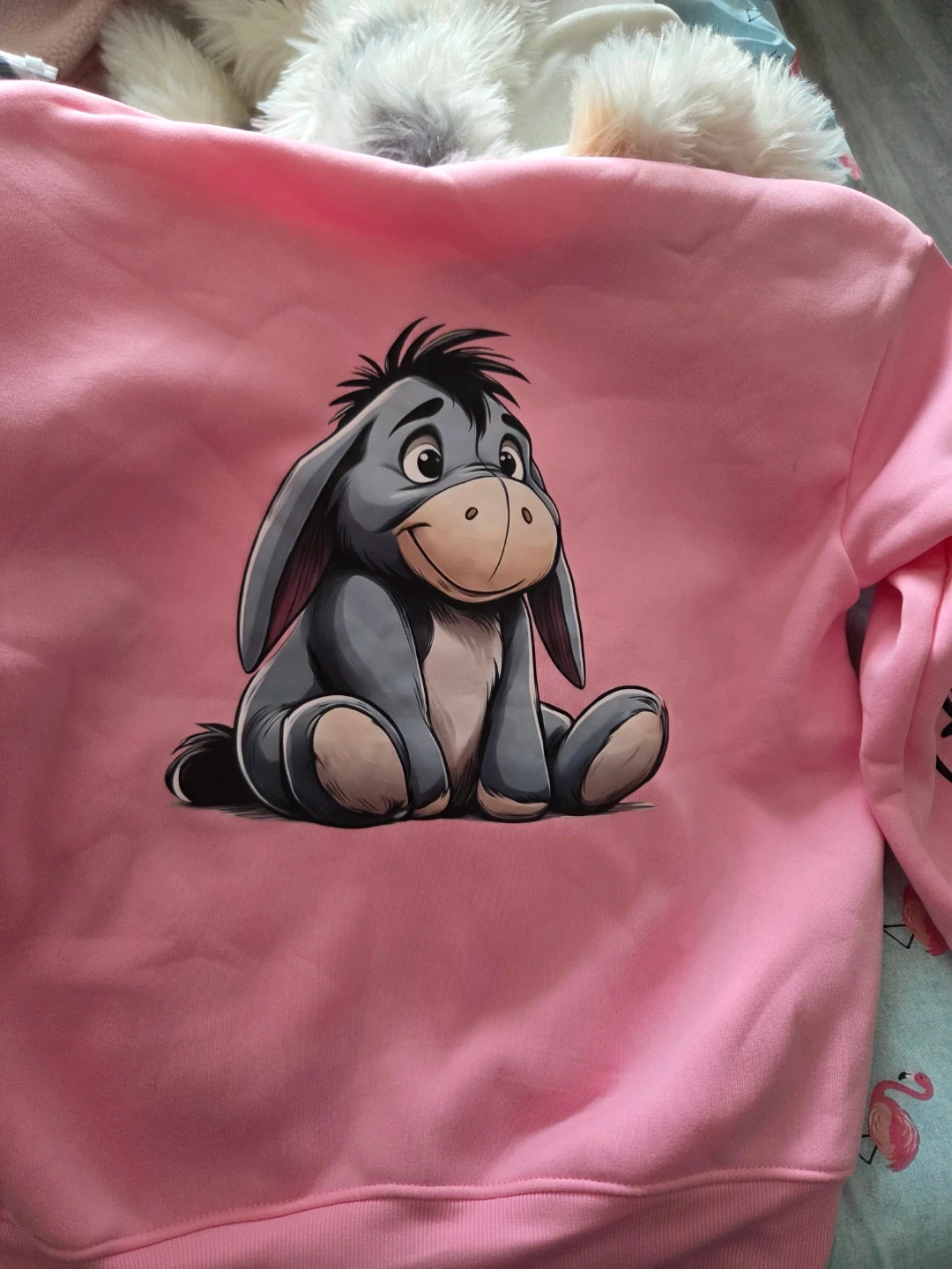$25.00 Each or both for $40.00! This set includes a pink Disney Eeyore zip-up hoodie and a lavender crewneck sweater. Both feature Eeyore graphics and the Disney logo on the sleeves. They're comfy and perfect for any Disney fan!
