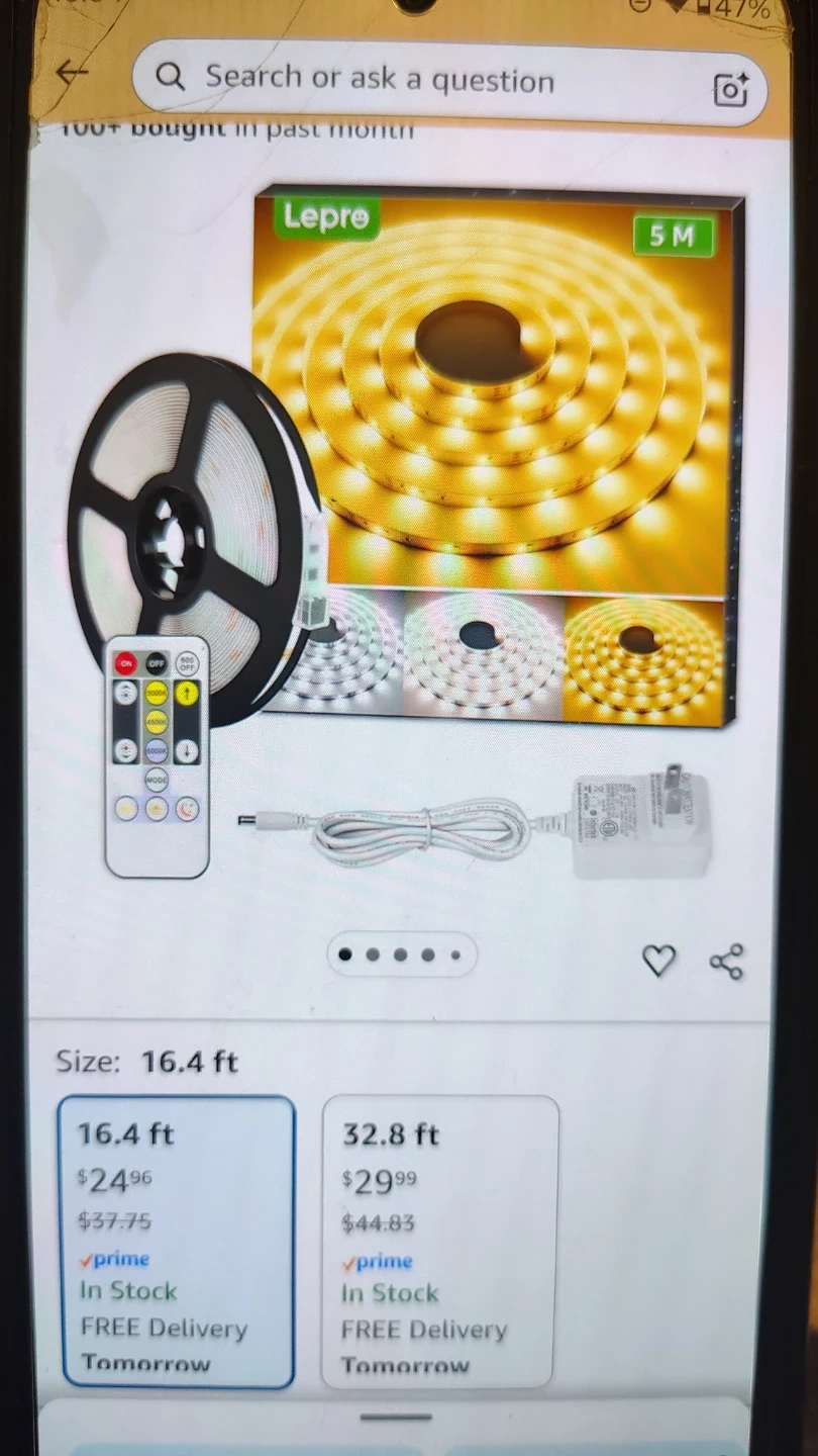Brand new 5 meter LED light strip with remote control. Wall power adapter, not battery operated.