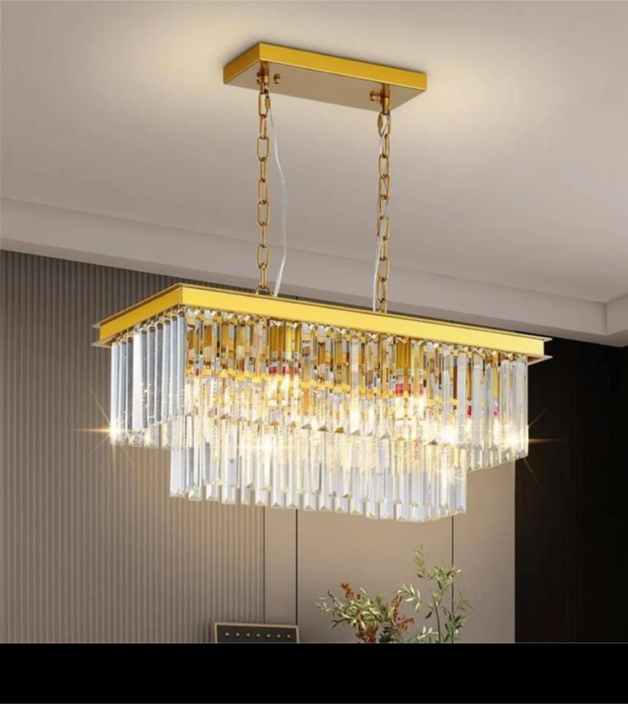 Selling a brand new gold crystal chandelier, still in its original packaging! It comes with all the components and instructions, ready to add a touch of elegance to your space