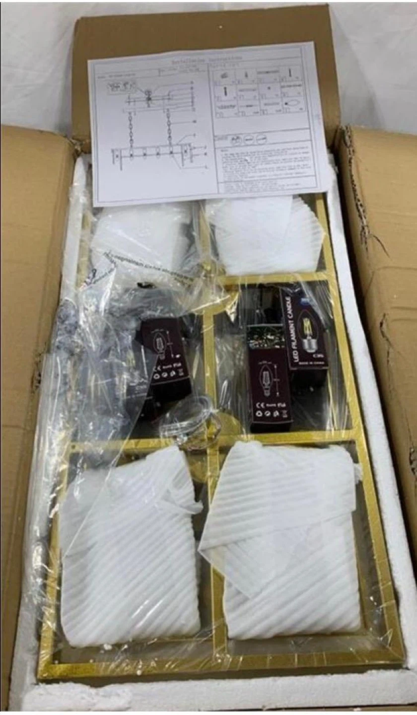 Selling a brand new gold crystal chandelier, still in its original packaging! It comes with all the components and instructions, ready to add a touch of elegance to your space