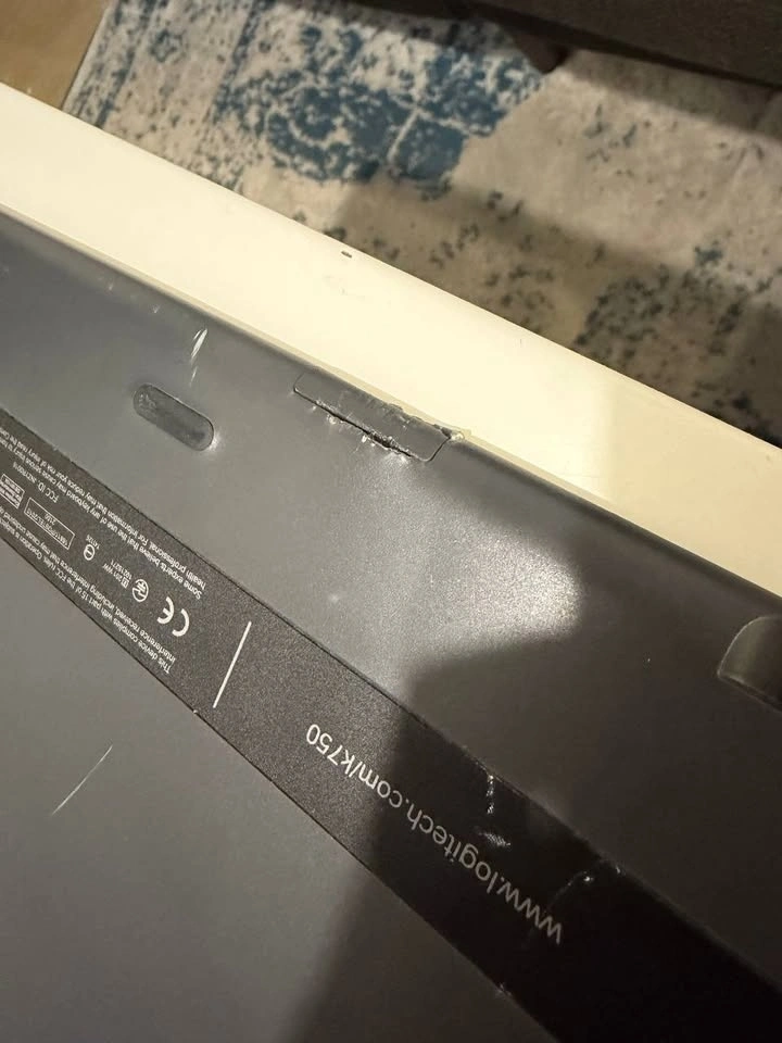 Selling a used K750 keyboard. The back where the battery insert is is gouged a bit from trying to access that compartment. Please note that you will need a Darkfield wireless receiver for this keyboard, as the original one is missing.