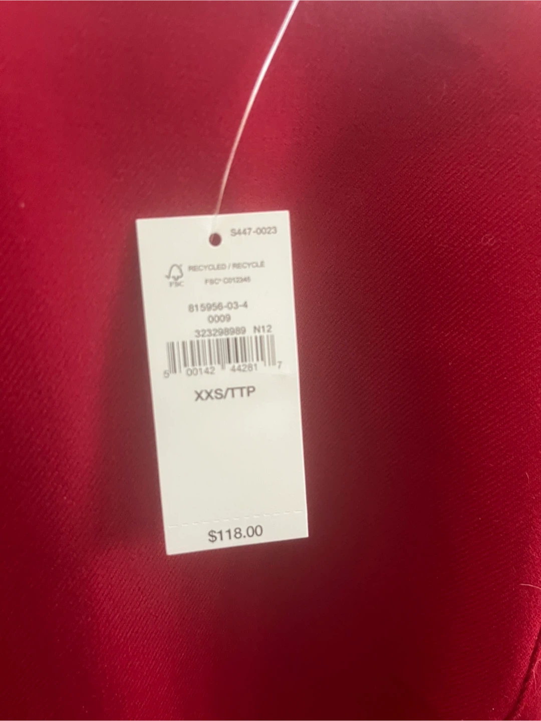 Red sleeveless mini shift dress by GAP. Made from recycled material. Size XXS.