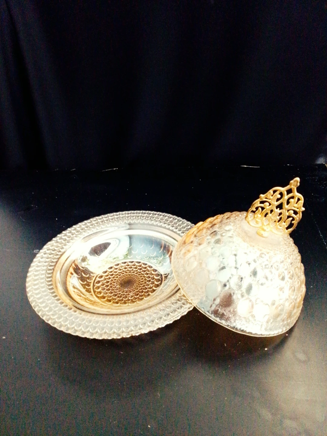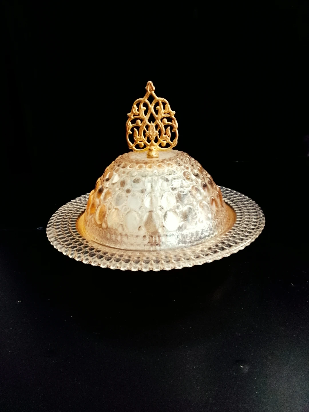 Elegant Glass Covered Dish with Gold Accent