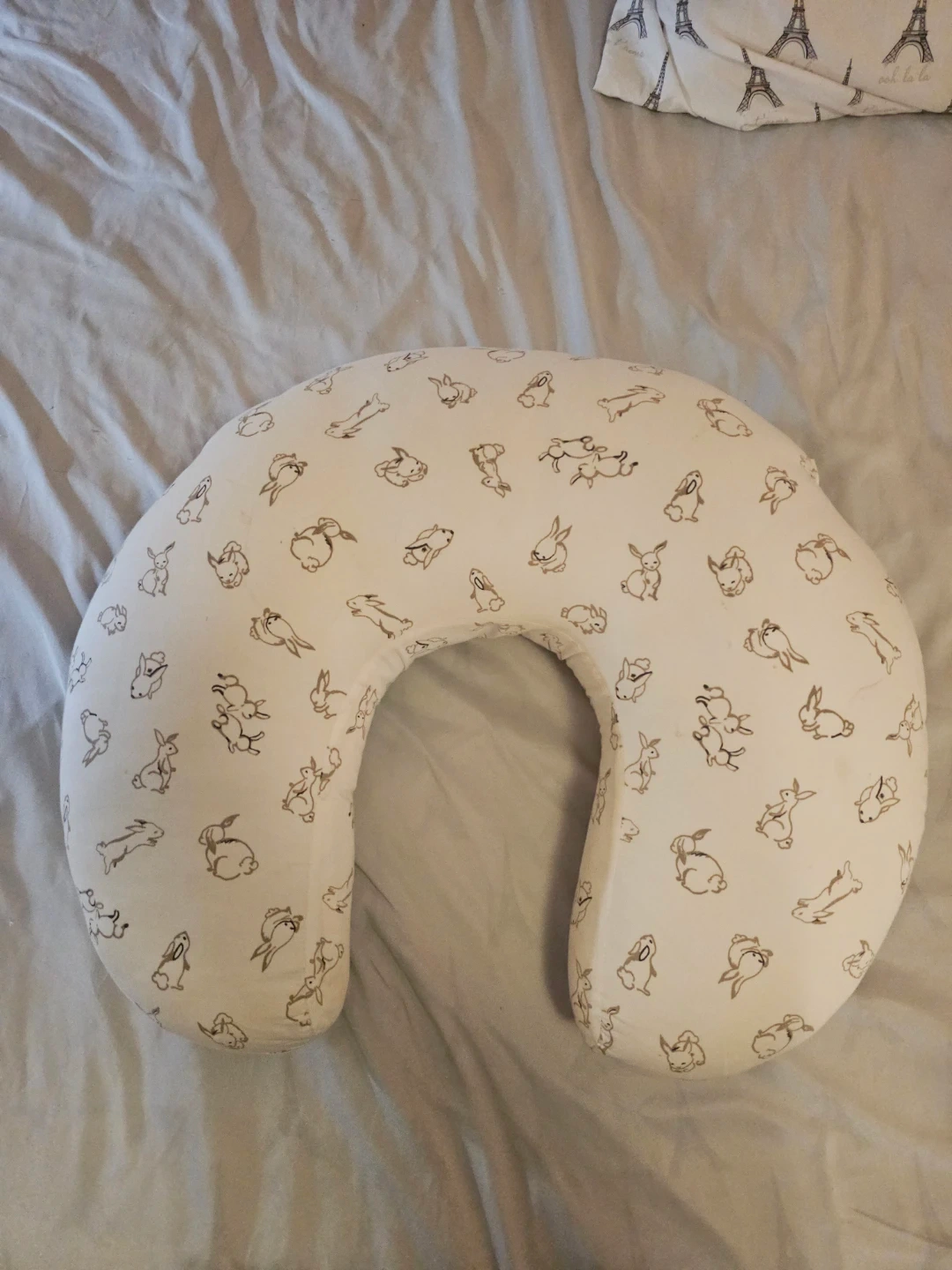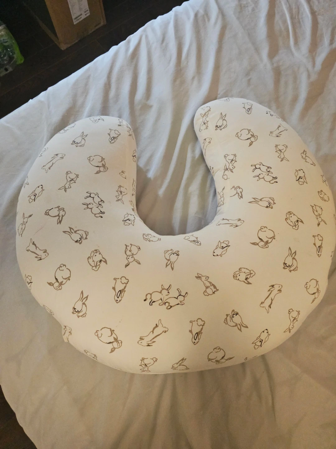Gently used Boppy nursing pillow featuring a cute bunny print! It's in great condition and perfect for supporting your little one during feeding time. It provides comfortable support for both you and your baby