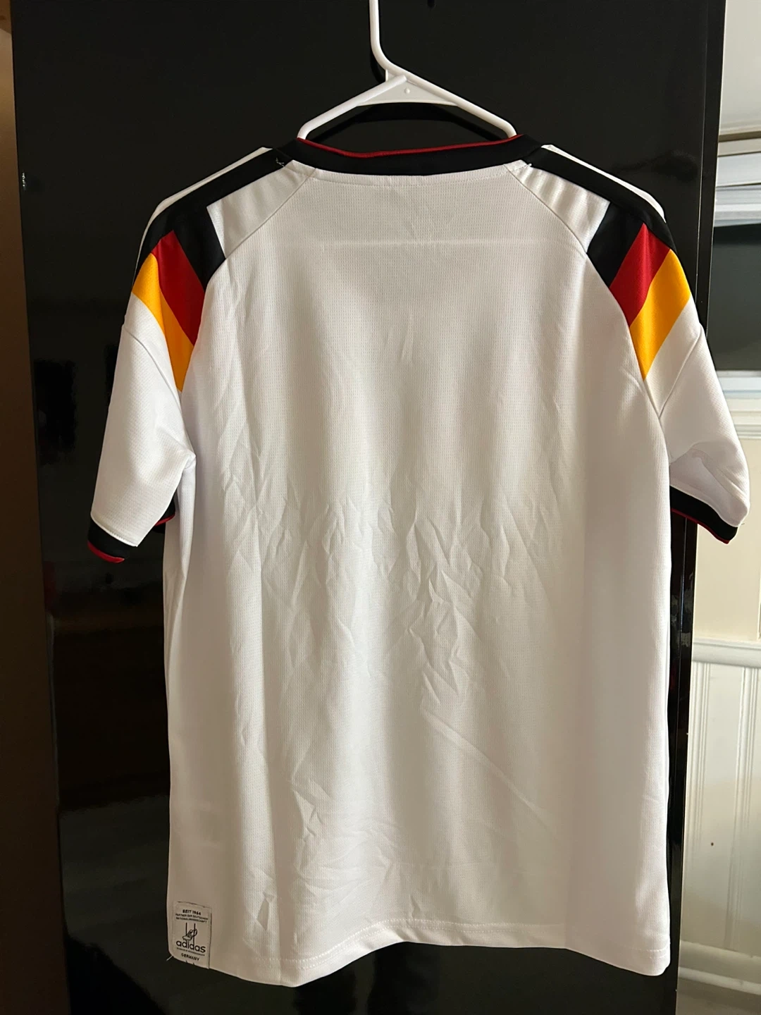 This is an Adidas Germany national football team jersey. The jersey is made with Aeroready and Climalite technology.