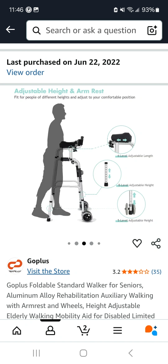 This Goplus walker is designed for seniors and aids in rehabilitation. It's made of aluminum alloy and features adjustable armrests and height. It's also foldable for convenient storage and transport. Pick up, cash only.