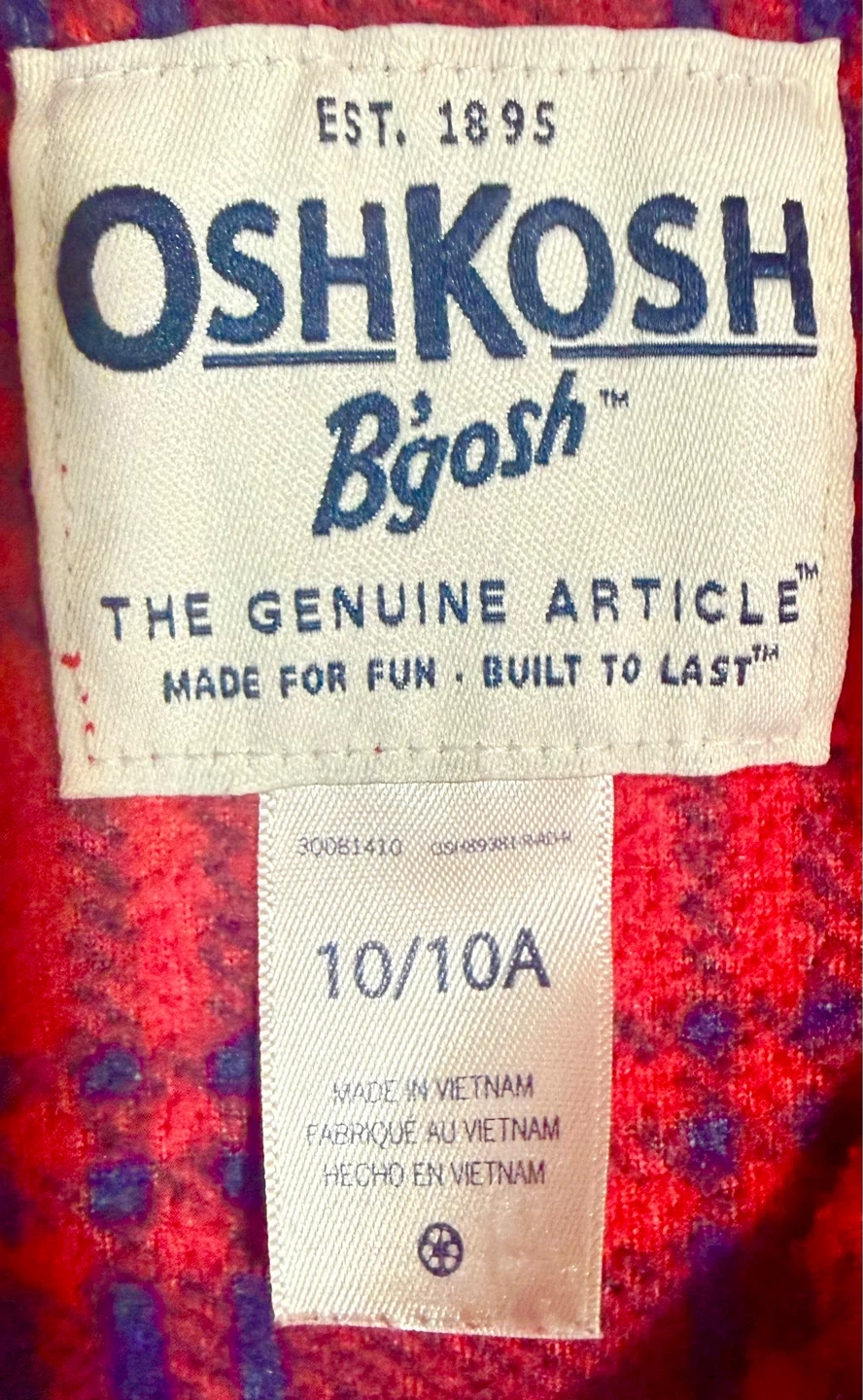 OshKosh B'gosh fleece pullover in a red and navy plaid pattern. Made for fun, built to last! Perfect for cooler days. Size 10/10A.