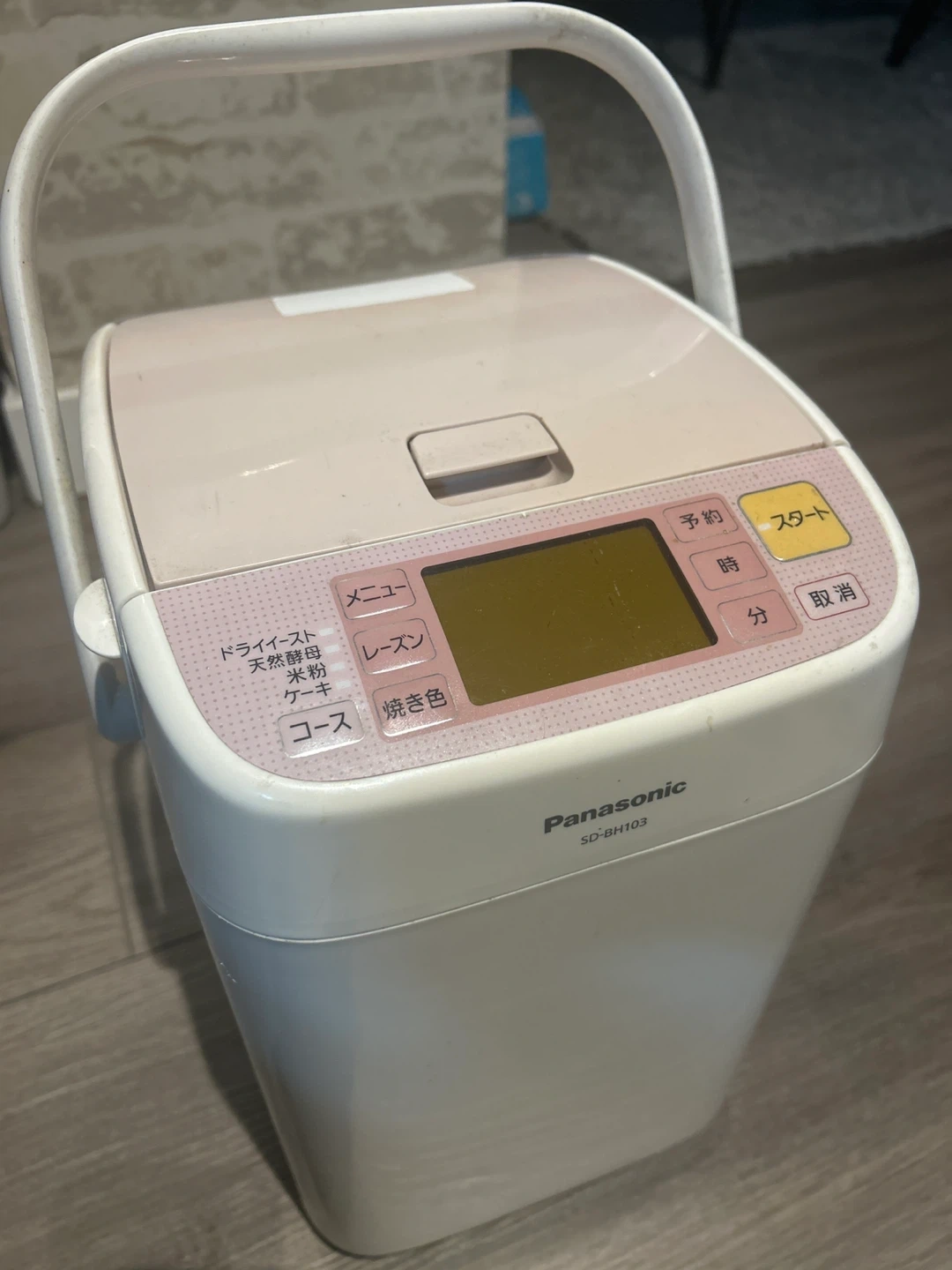 This is a Panasonic SD-BH103 bread maker I personally brought over from Japan. It's white and pink. This appliance can be used for making bread and cake.