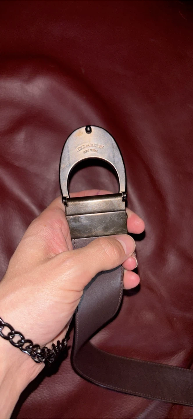 This is a Coach reversible belt with a signature "C" buckle. It's a classic accessory that can be worn with two different looks. Leather material.