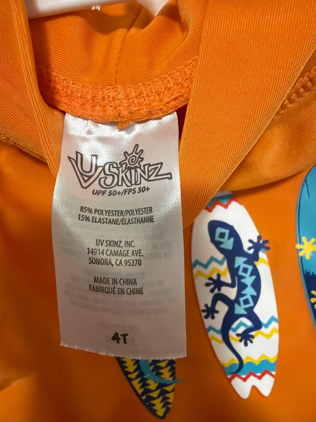 UV Skinz Orange Rash Guard Swim Shirt 4T Surfboards Lizards