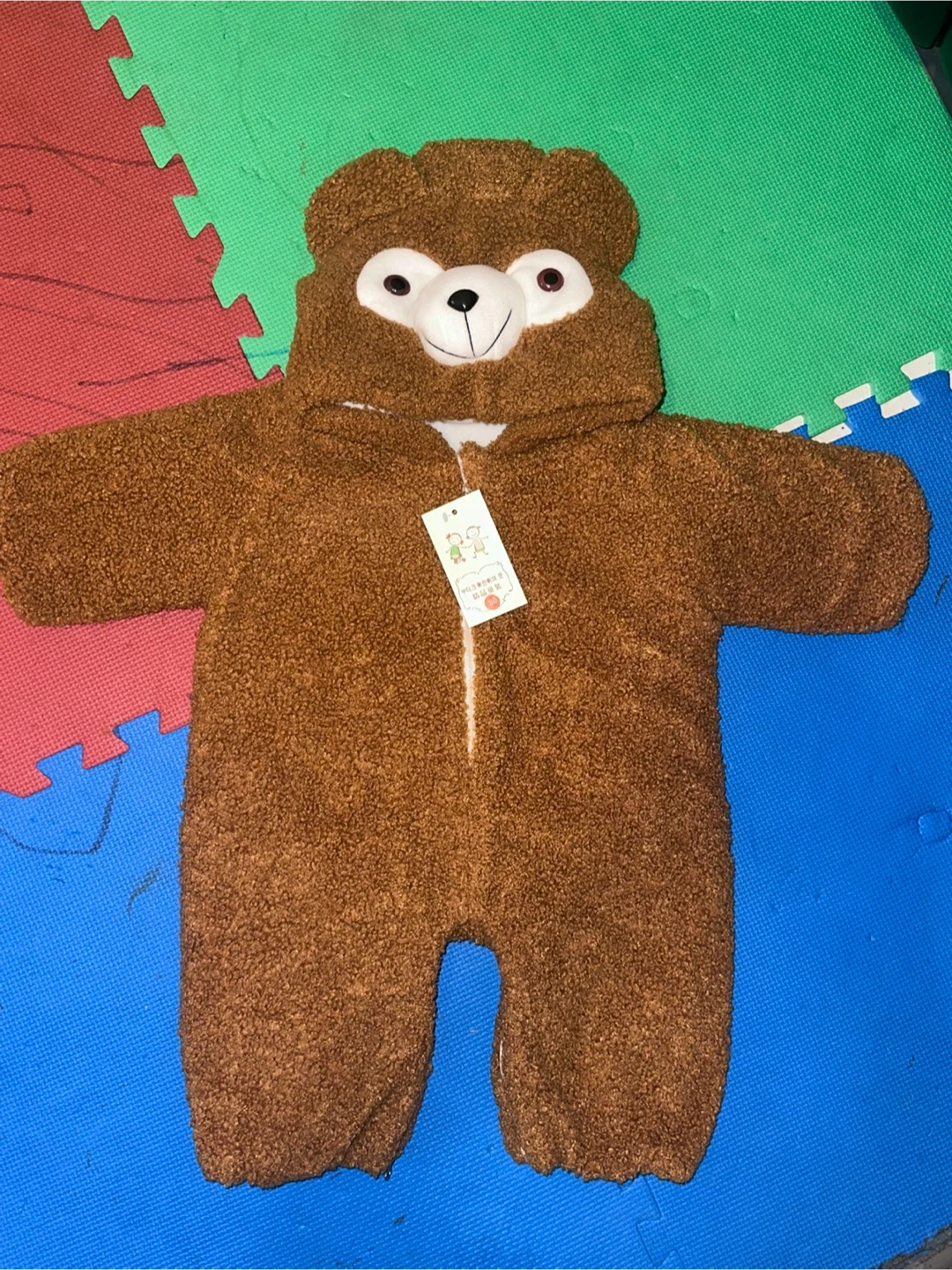Snuggle up your little one in this adorable brown bear costume onesie! It's super soft and perfect for keeping them cozy. The hood features a cute bear face, and the full-body design ensures warmth from head to toe