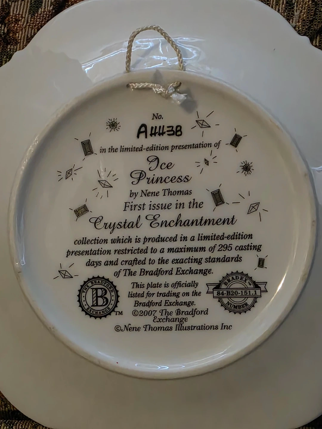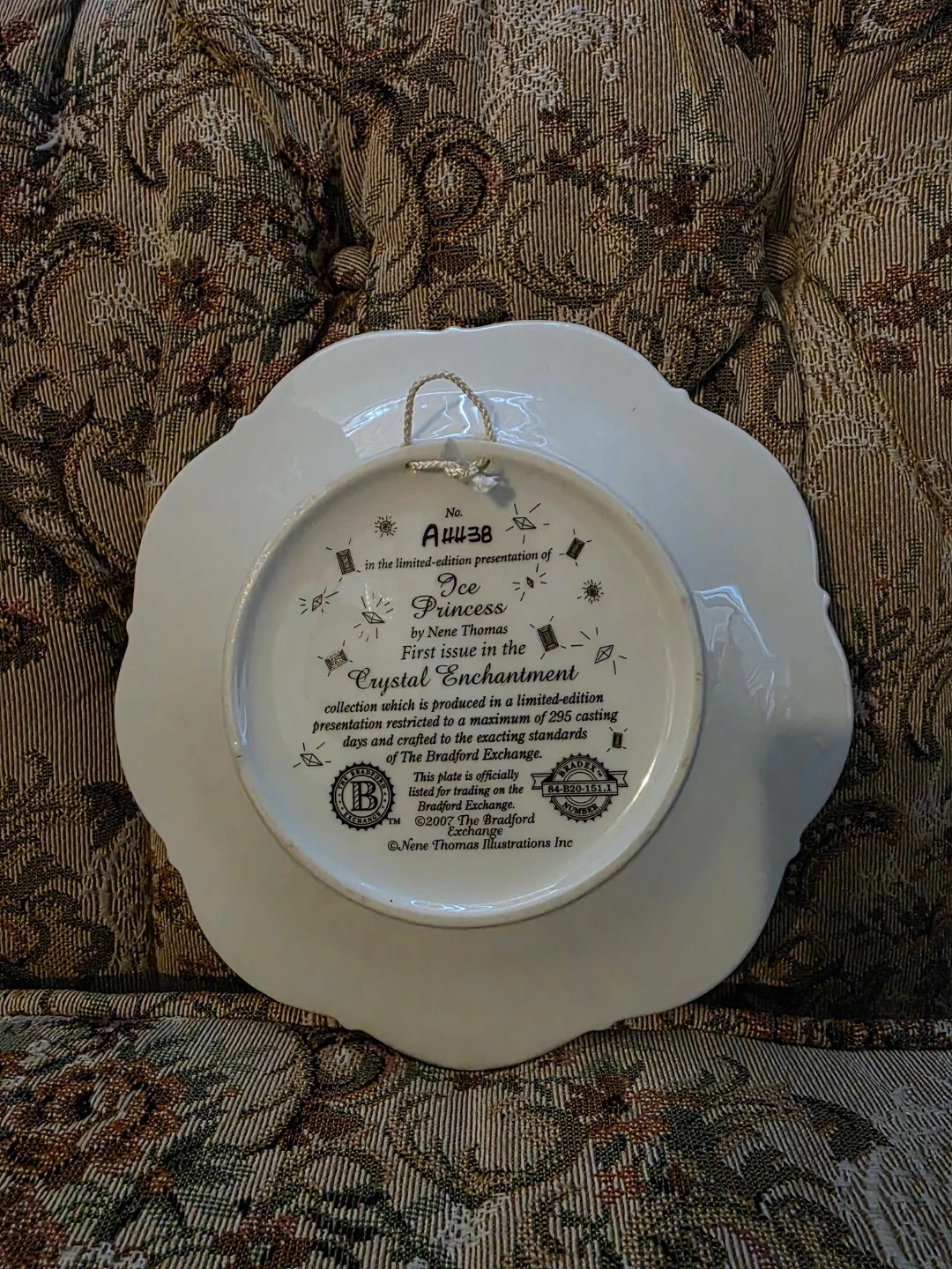 Selling a lovely Bradford Exchange collector's plate. This is the Ice Princess plate by Nene Thomas, the first issue in the Crystal Enchantment collection. This plate is officially listed for trading on the Bradford Exchange and crafted to the exacting standards of The Bradford Exchange, 2007 Gothic artwork.