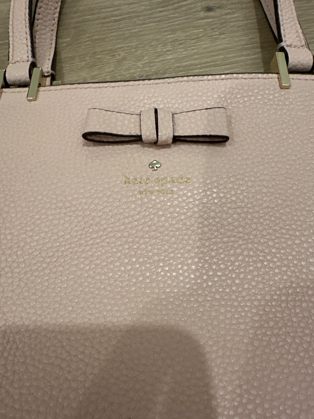 This is a lovely pink pebbled leather tote bag from Kate Spade. It features a cute bow accent on the front and a spacious interior with pockets. Perfect for carrying your everyday essentials!