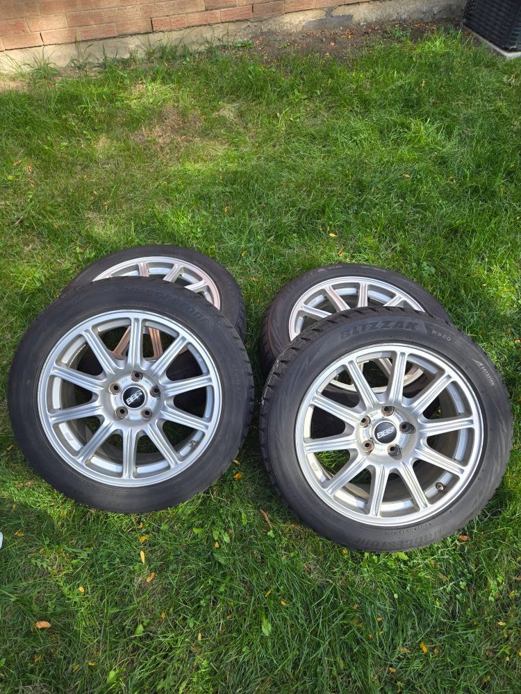 5Selling a set of four 05-07 WRX STi oem BBS wheels mounted with Bridgestone Blizzak WS80 tires.