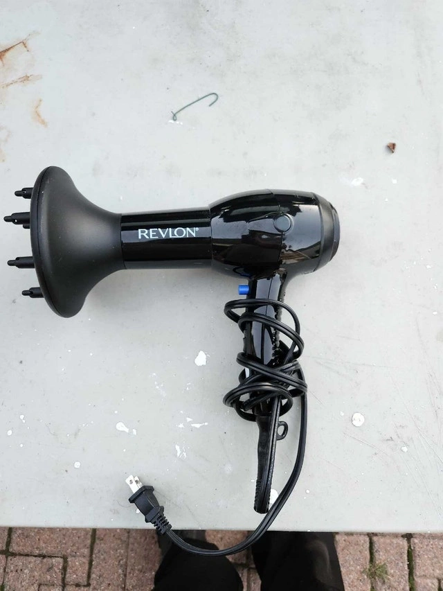 Get ready to say goodbye to bad hair days with this Revlon hair dryer! This used Revlon hair dryer delivers powerful airflow and consistent heat, making it perfect for all hair types. This model is 1875W, 125VAC 60Hz, model RV544F. The dryer is in good working condition, ready to help you achieve salon-quality results at home. Brand: Revlon, Model: RV544F, Power: 1875W. Cash accepted.