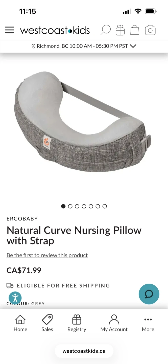 Ergobaby Natural Curve Nursing Pillow with Strap. Supports natural feeding positions. Grey colour. It has a comfortable, supportive design for parent and baby. Perfect condition, only used 3 or 4 times.