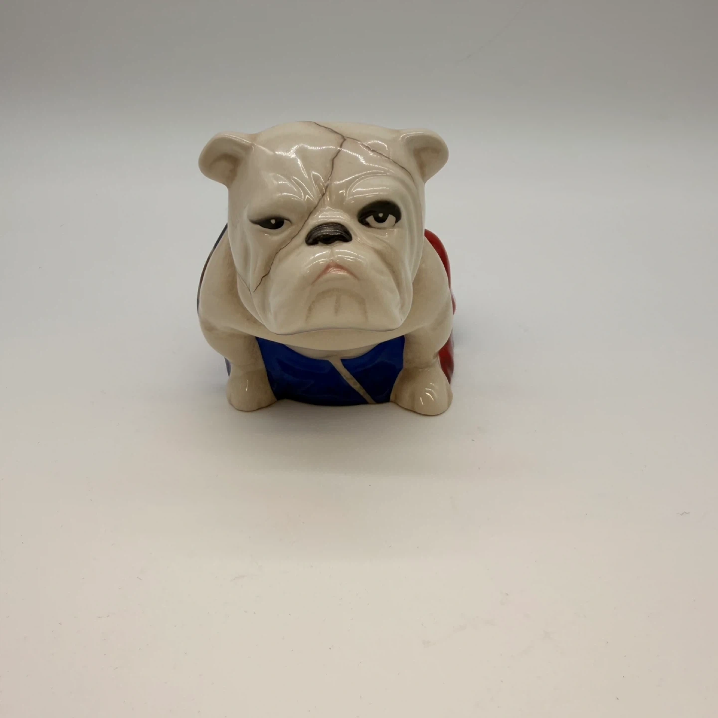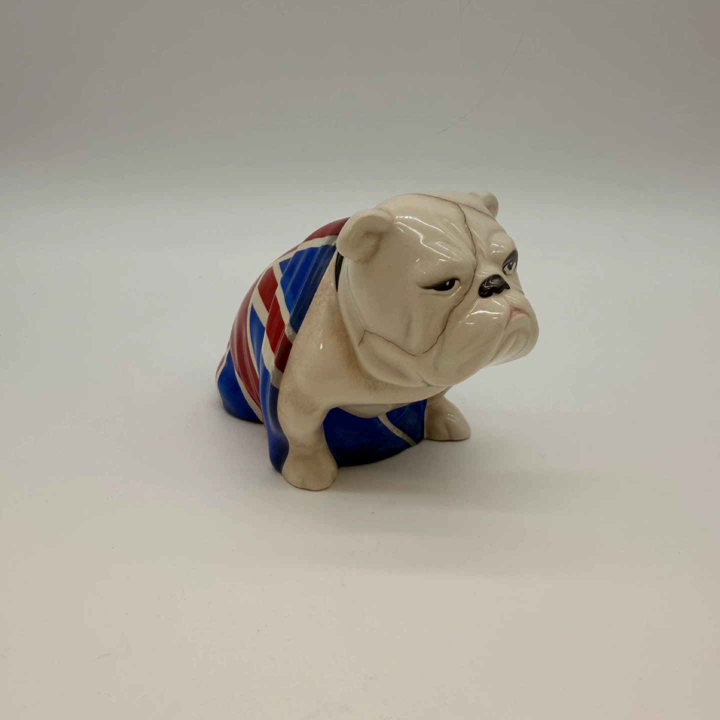 This collectible bulldog features the Union Jack design and is part of the official 007 Spectre Royal Doulton series.