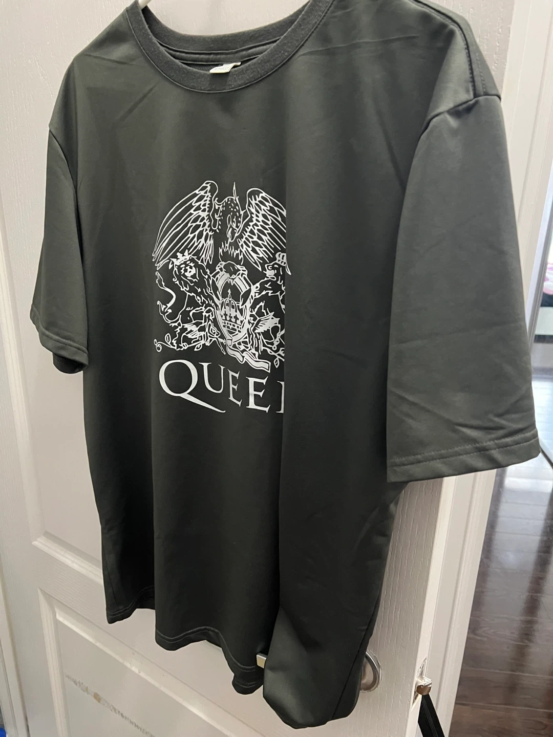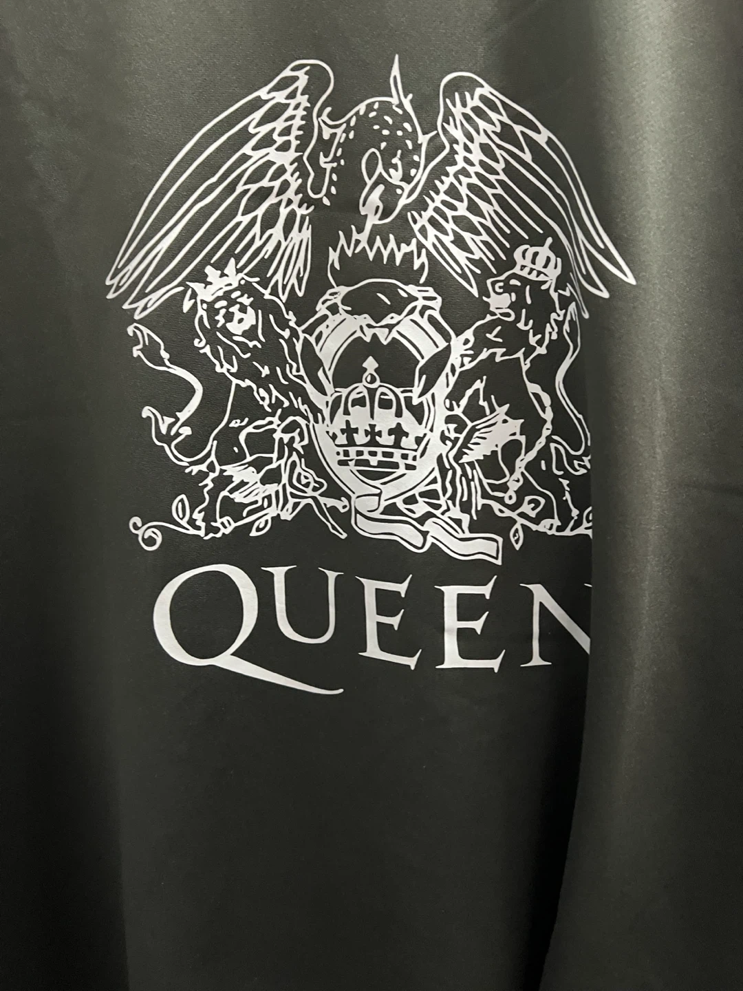 Selling a Queen band t-shirt in size XL! The shirt features a large white print of the Queen crest on the front. The material is polyester, so it's lightweight and comfortable to wear