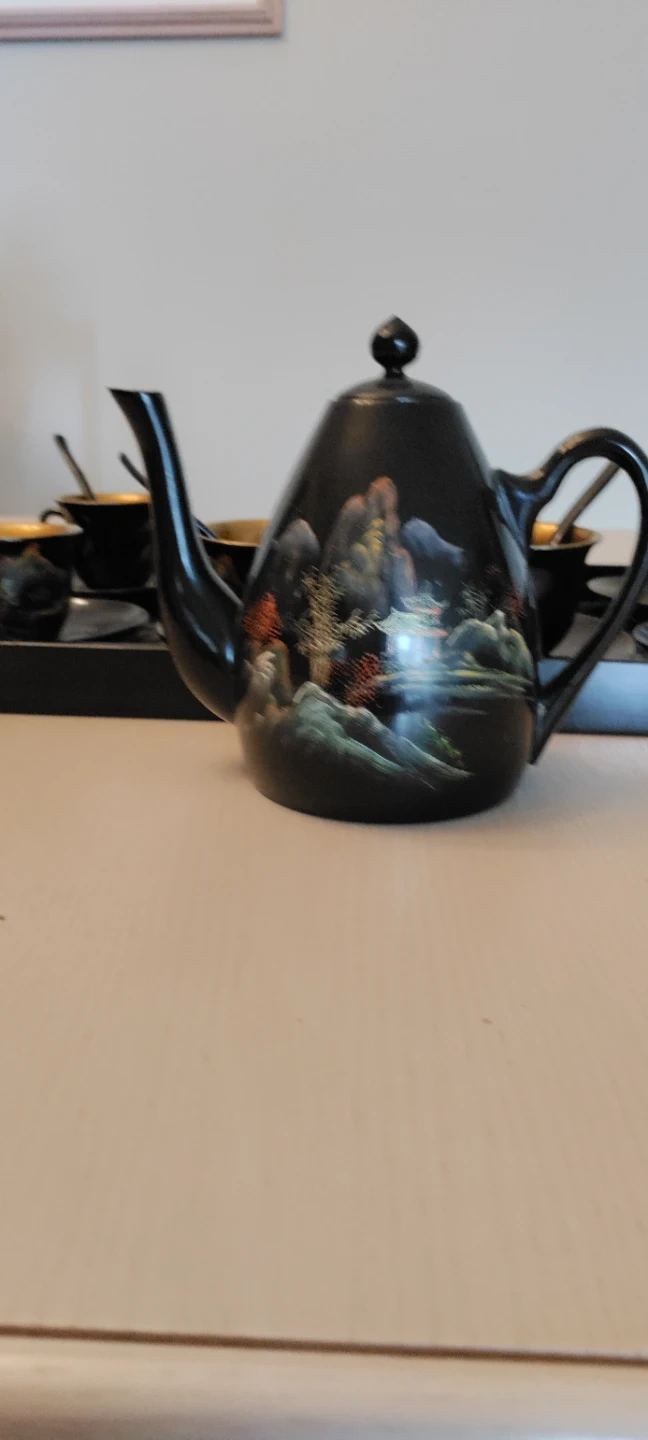 Black Tea Set with Scenic Design