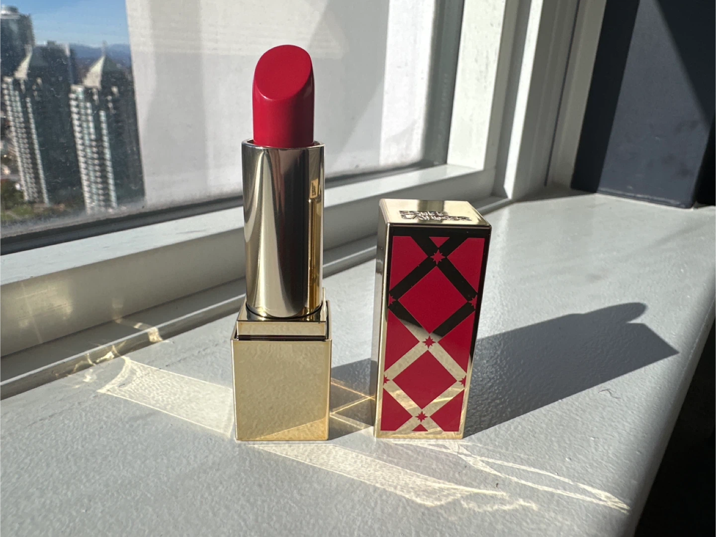 Selling an Estée Lauder lipstick in a beautiful red shade! It comes with its original box, featuring a diamond pattern in red, gold, and black. Perfect for adding a pop of colour to your look for Halloween 🎃 👻