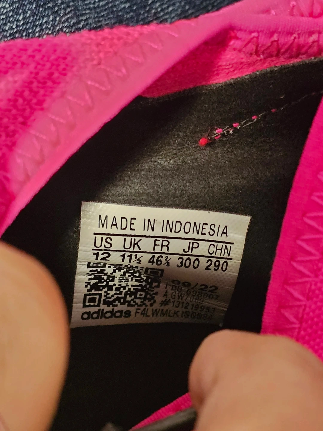 These Adidas Predator 20.3 indoor soccer shoes are black and pink. They feature a laceless design with a supportive mid-cut collar. Great for playing soccer indoors!