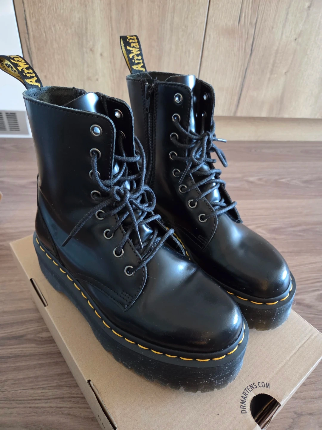 Buy & SellDr. Martens Jadon platform Boots US Women's size 7Dr. Martens Jadon platform Boots US Women's size 7$90 Dr. Martens Jadon platform boots with yellow stitching and side zippers (US women's size 7). Lightly worn less than 5 timesConditionLike newSizeUS size 7WHERE TO MEETDowntown eaton centerView MapSELLERverifiedSubinDowntown Toronto812 reviews2 chats·10 favorites·182 viewsSEND CHAT TO SELLERHi Subin! I’m interested in your listing.Hi Subin! I’m interested in your listing.Get the Karrot app to chatSign In to chat