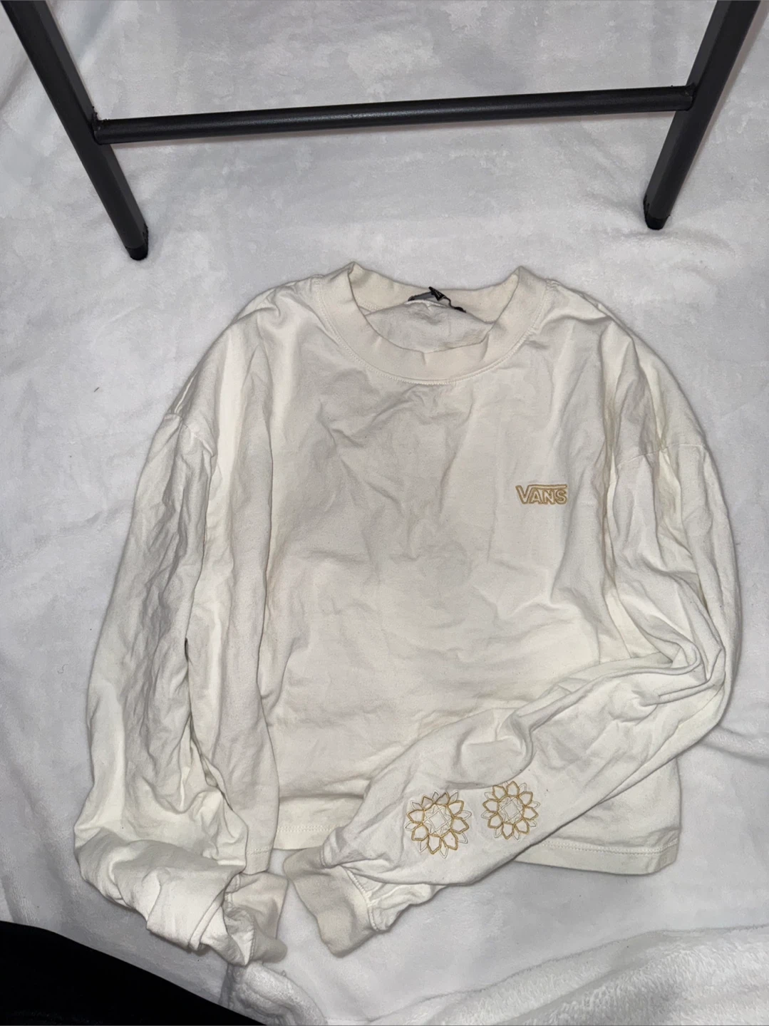 Vans Cream Long Sleeve Shirt with Flower Embroidery