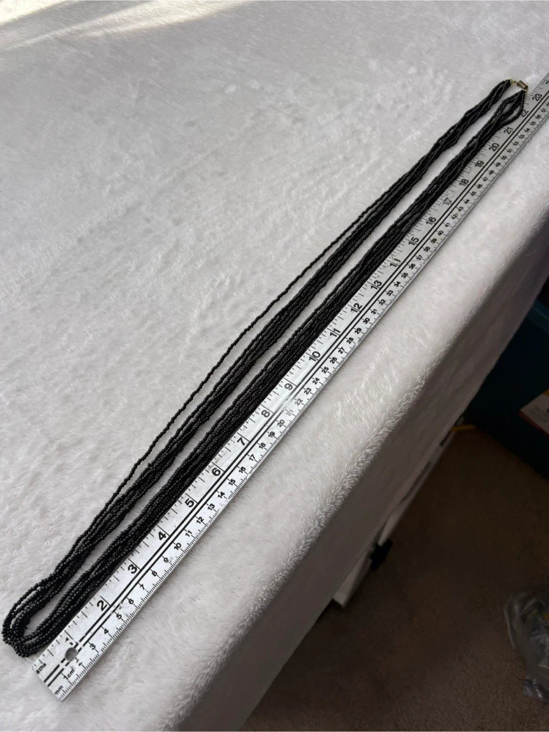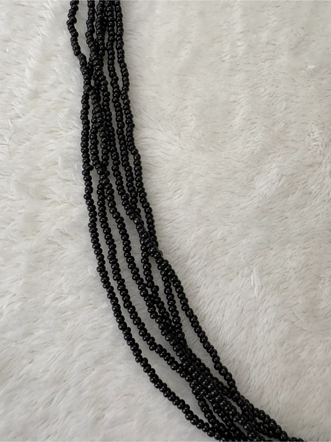 Vintage Multi Strand Black Seed Bead Long Necklace 46 in