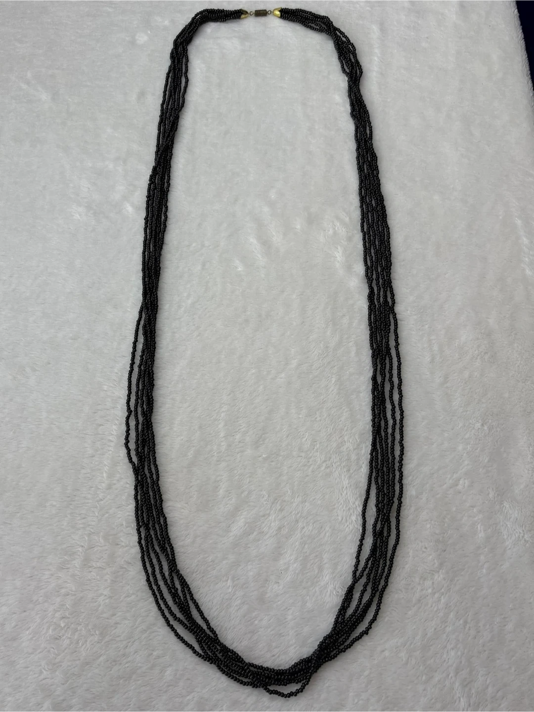 Vintage Multi Strand Black Seed Bead Long Necklace 46 in