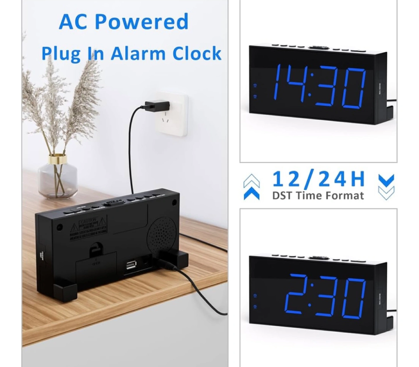 LED Digital Alarm Clock with Loud Alarm and 12/24H Time Format