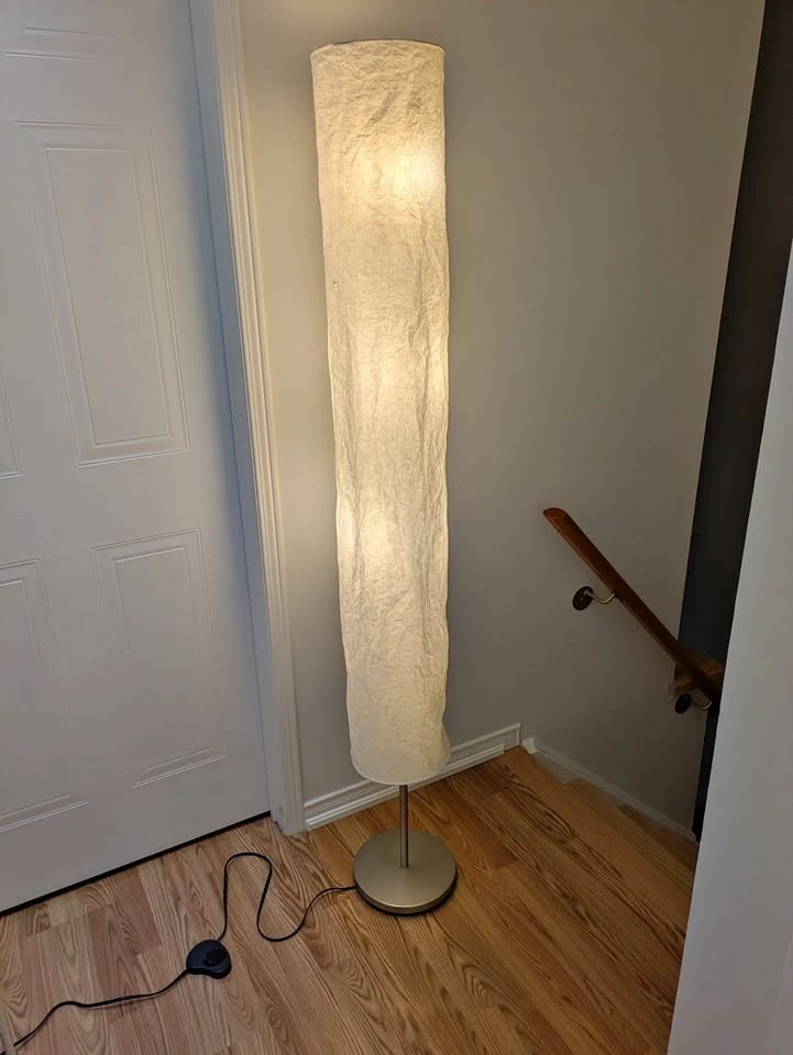 Used IKEA SKYAR floor lamp. The paper cover has some damages that were patched up, but it works great. Dimensions are 10"W x 10"D x 68"H. Comes from a smoke-free and pet-free home. Pick up is in Mississauga near Glen Erin and Britannia.