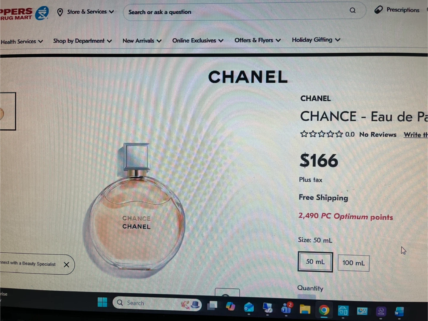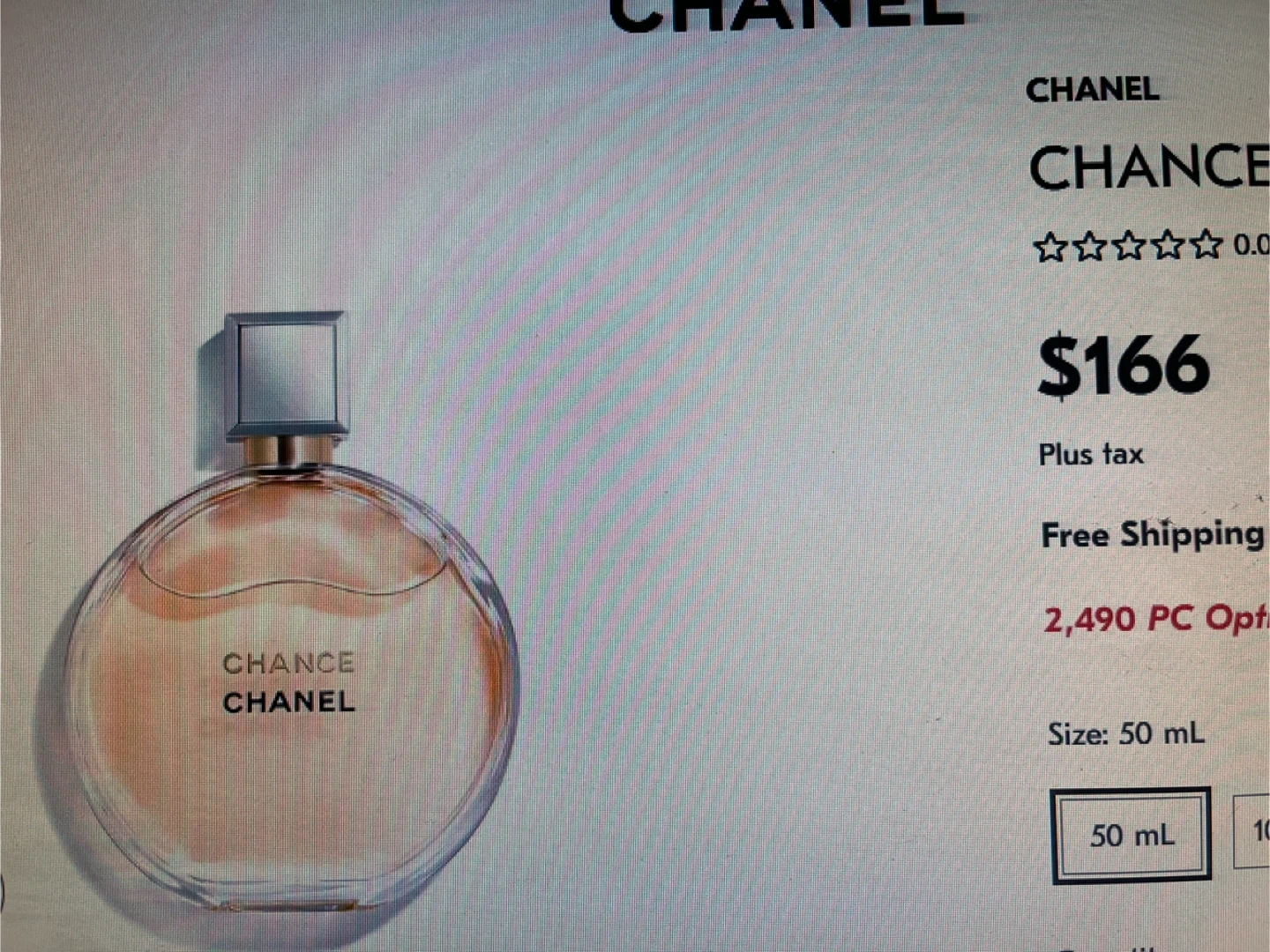 Selling a bottle of Chanel Chance Eau de Parfum. It's a 50 mL bottle. Retails for $166 plus tax at Shoppers Drug Mart