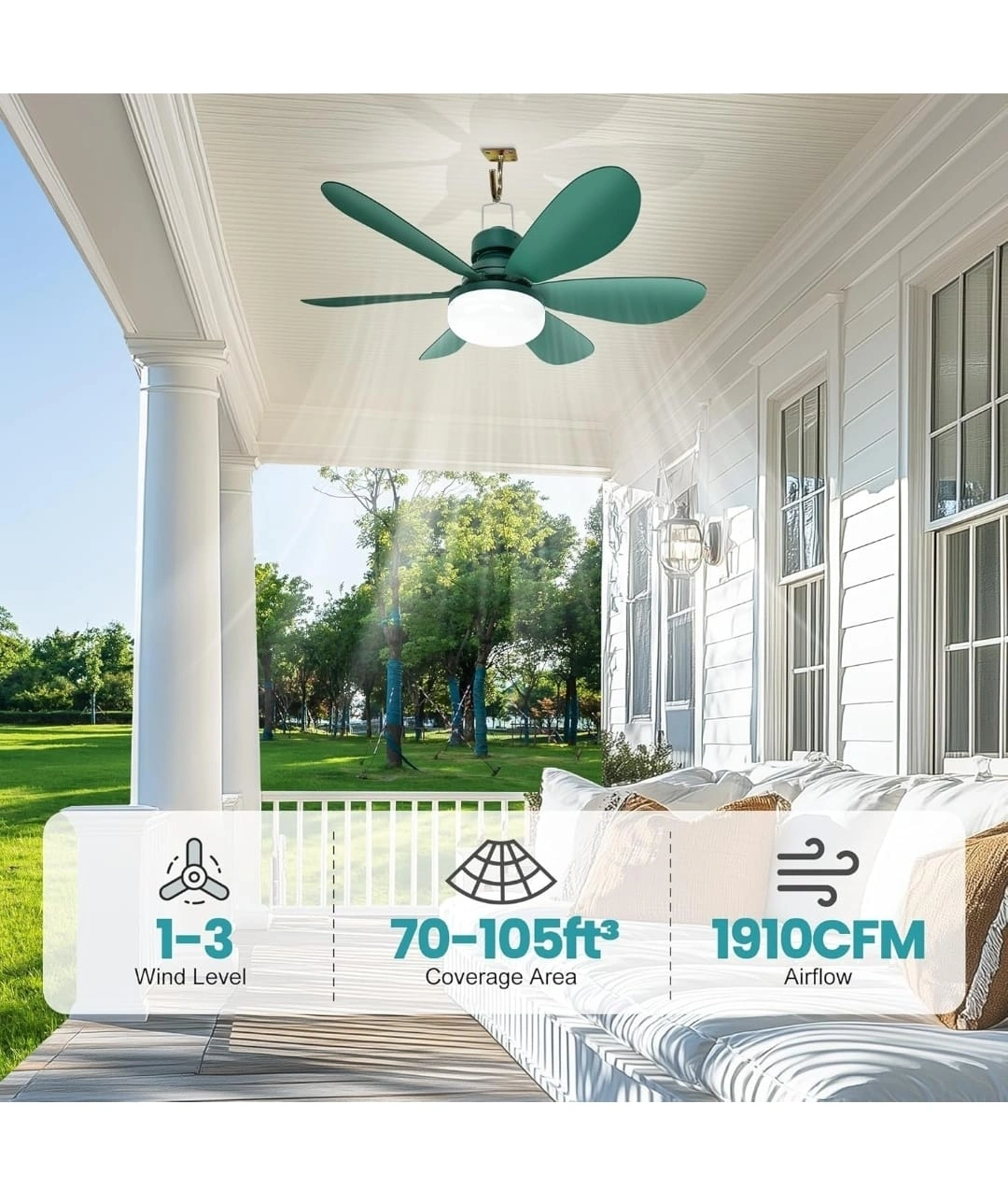 EcoCalm 20 inch Solar Battery Fan Light - Green