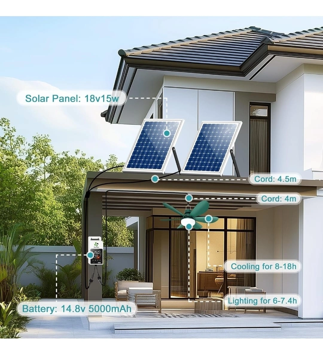 Get ready for summer with this EcoCalm solar battery fan light! It's perfect for cooling and lighting your off-grid system.