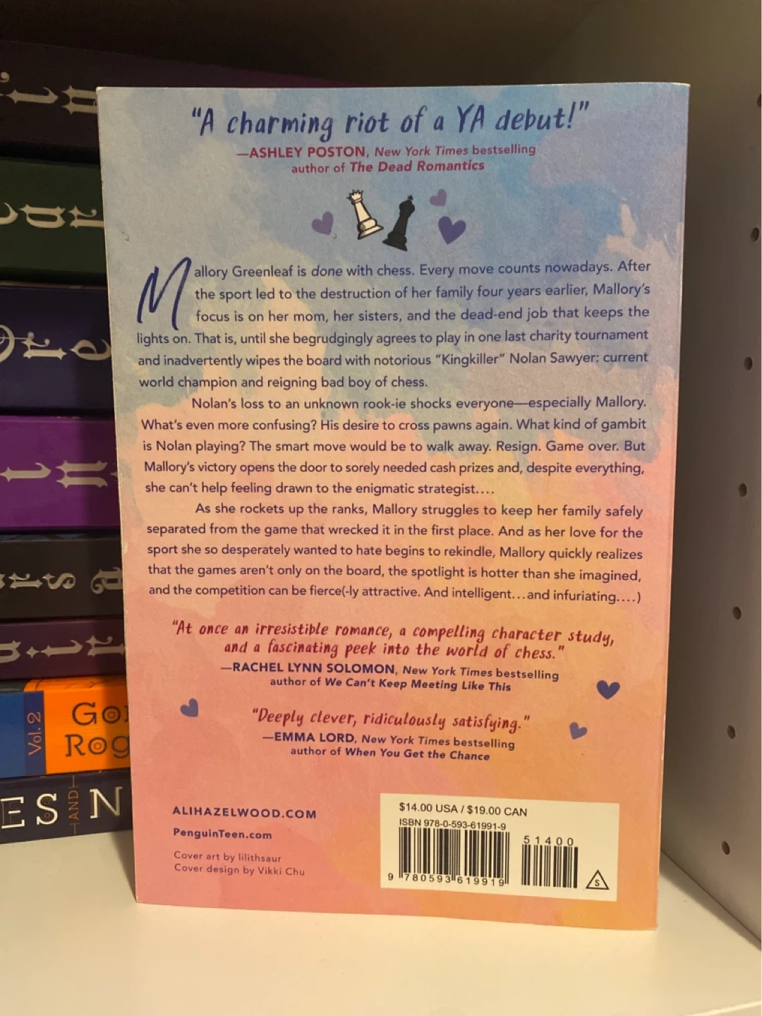 A young adult romance novel about a competitive chess player. It's written by Ali Hazelwood, author of 'Love, Theoretically' and ‘The Love Hypothesis’ - Paperback edition.