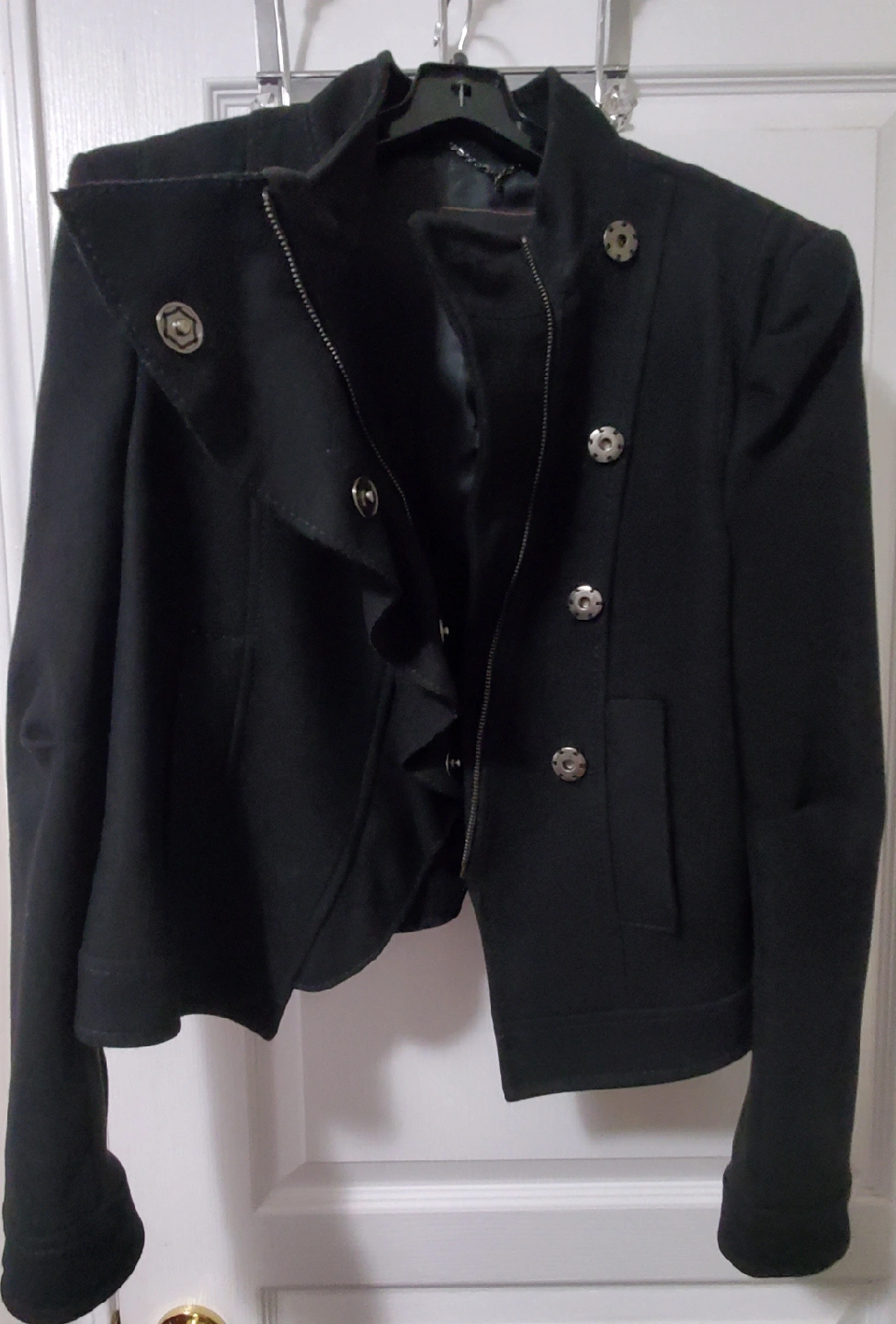 BCBGMAXAZRIA Black Ruffle Short Jacket [L]