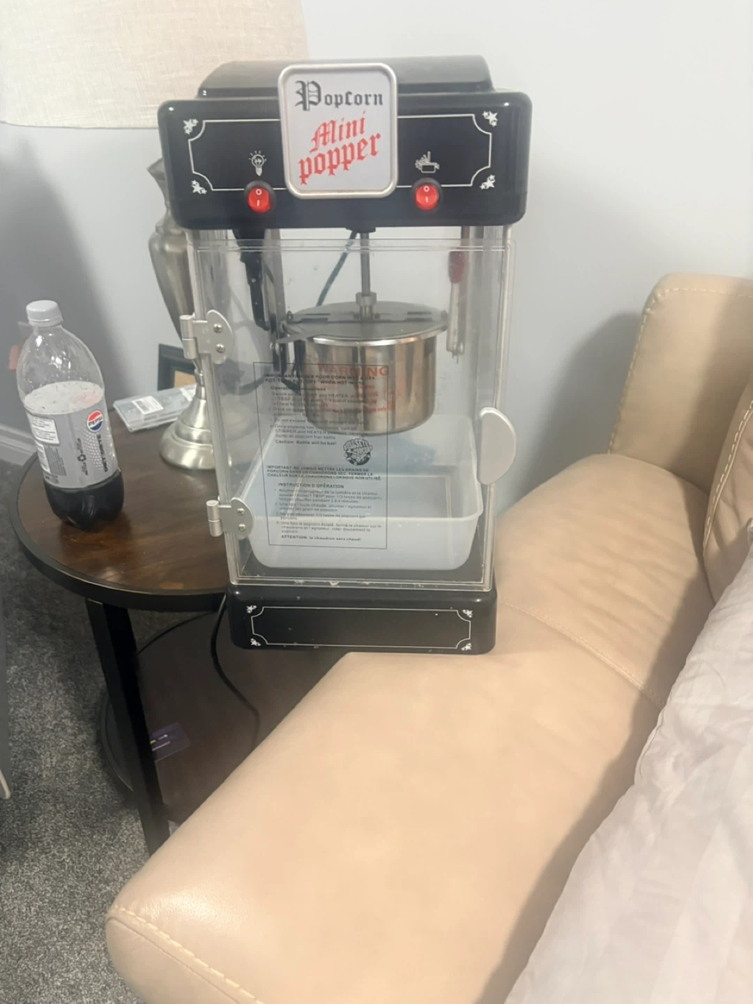 This Nostalgia mini popcorn popper makes a fun addition to movie nights! It's a compact machine perfect for making fresh popcorn. Use the included scoop for kernels and oil. The clear popping chamber lets you watch the magic happen!