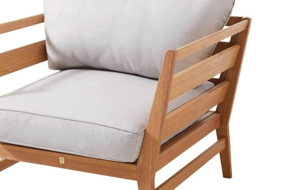 The CANVAS Capilano 4-Piece Conversation Set is made from FSC-certified eucalyptus wood with a natural multi-coat oiled finish for longevity and style. Plump, plush, water-, stain-, and fade- resistant cushions, protected by Tripel. Beautiful modern design is perfect for any outdoor space. Set includes: 1 loveseat, 2 club chairs, 1 coffee table
