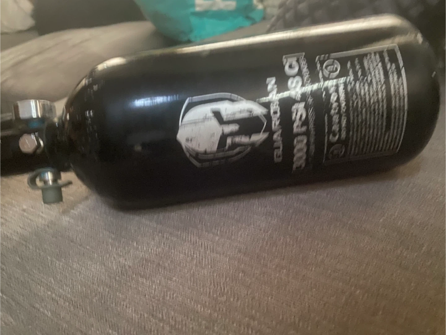 This is a Carbon-FI Guardian air tank, rated for 3000 PSI. It's made of carbon fiber and comes with a regulator. This tank is used for paintball or airsoft applications also selling my tippman A5 market and the paintball heavy duty vest all together let me know ! Used everything about 3 times